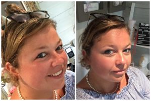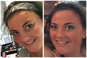 Graag laten we jullie laten kennis maken met airbrush make-up en waarom wij er zo dol op zijn.We hebben de airbrush leren kennen via Nichole, een Amerikaanse vriendin uit onze studietijd in LA, met wie we nog een goed contact hebben. Nieuwsgierig als we zijn hebben we om haar mening en ervaring hierover gevraagd. Naast de uitdaging van onze eigen zaak wilde we ook nog iets vernieuwends. Nichole was alleen maar vol lof over het werken met de airbrush en Dinair (airbrush make-up merk uit LA)En al snel na een grondig onderzoek en testen van het product, waren wij ook verkocht voor deze stijl van make-up.Waarom?Dinair Make Up:– is hypoallergeen ( dit wil zeggen dat het weinig tot geen allergische reactie oproept).– is zonder parabenen, olie en siliconen (ook alleen maar gezonder voor de huid).– dekt de huid beter dan de klassieke fond de teint en geeft toch een natuurlijke look– heeft zelfs een speciale lijn voor het coveren van zware acne, wijnvlekken, littekens, tattoo’s,…– verstopt de poriën niet.– is hygiënischer, je zit niet met sponsje, penselen en borstels waar de make up in kruipt.– blijft langer perfect zitten en is ook gemakkelijk verwijderbaar.– kan sneller aangebracht worden .– aanbrengen voelt zeer aangenaam aan, zoals een frisse verneveling.– producten worden niet getest op dieren. Ook dat is belangrijk!Je ziet enkel maar voordelen.Hier een paar voor en na foto’s.